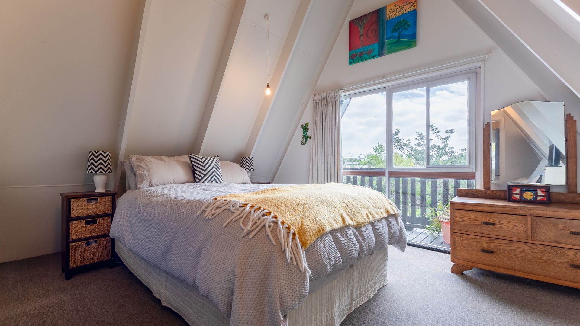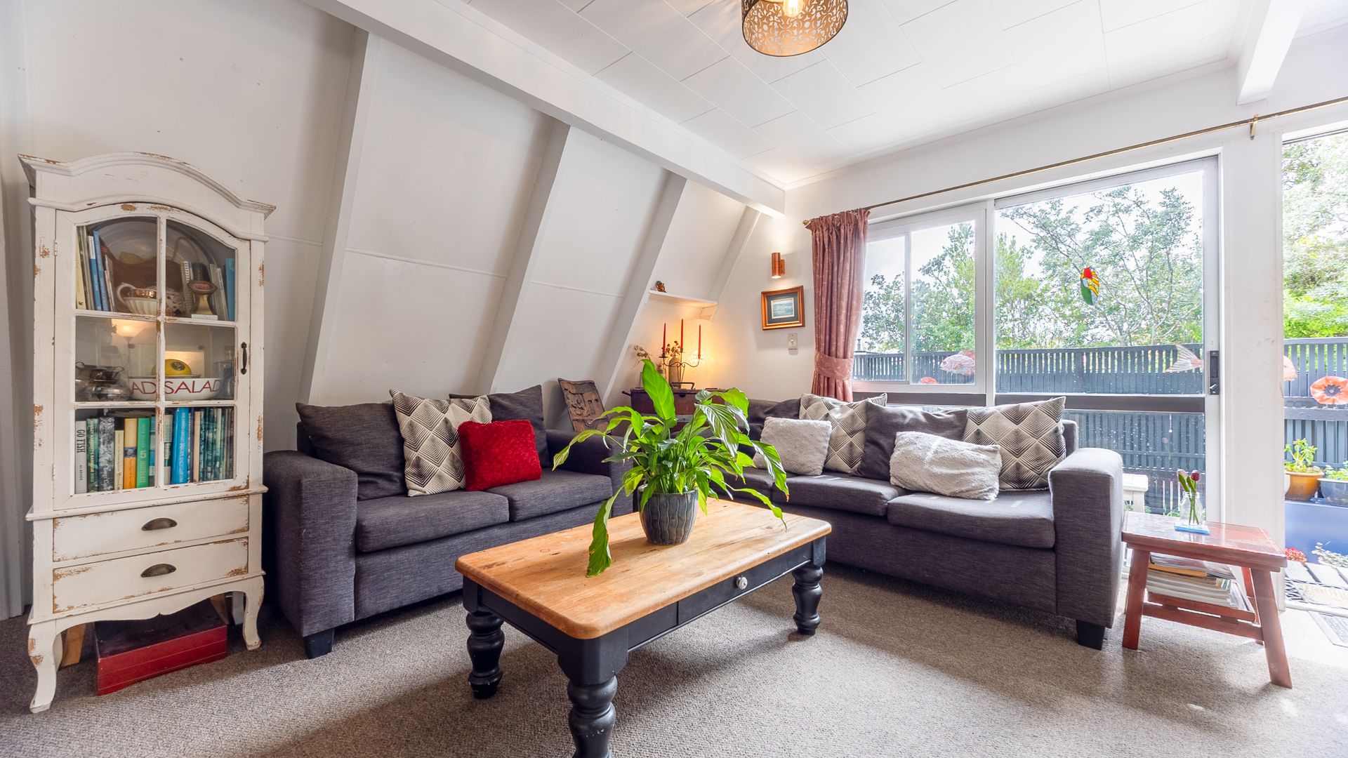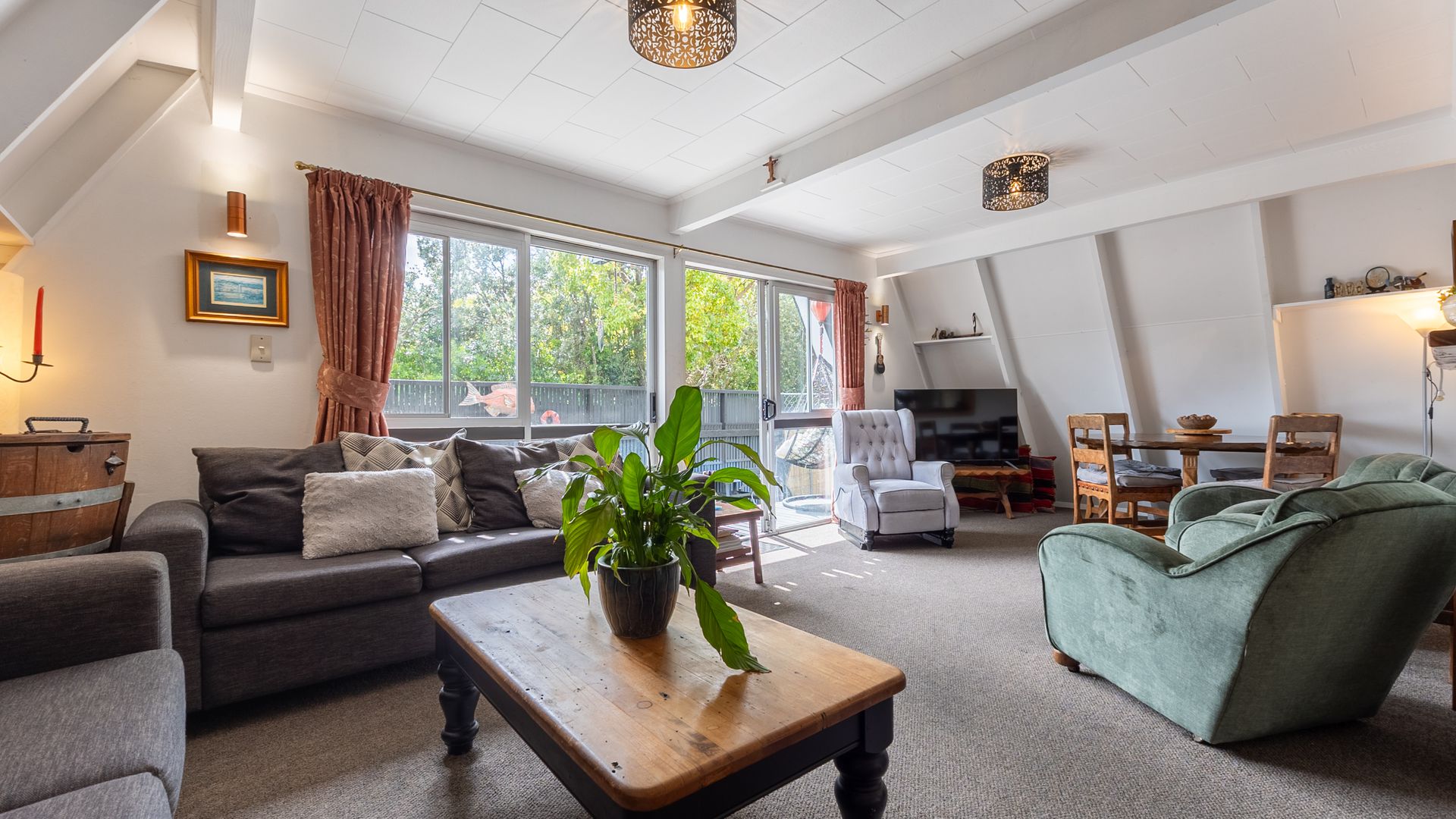 Welcome to 187B Te Moana Road, Waikanae, a home that’s full of personality and is much more spacious than you might expect. This unique A-frame design offers a layout that’s both practical and inviting. At the heart of the home is the renovated kitchen, which anchors the open-plan living and dining area. It’s a great space to cook, connect and entertain with family and friends. Sliding doors create seamless indoor-outdoor flow, while a heat pump keeps the space comfortable year-round.