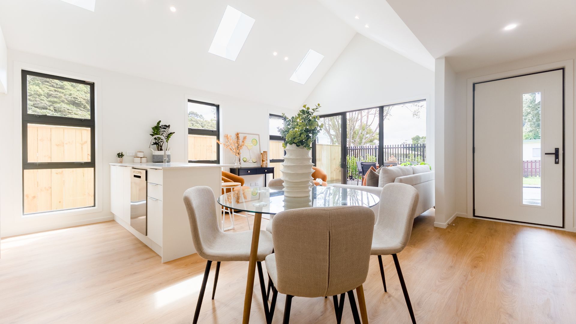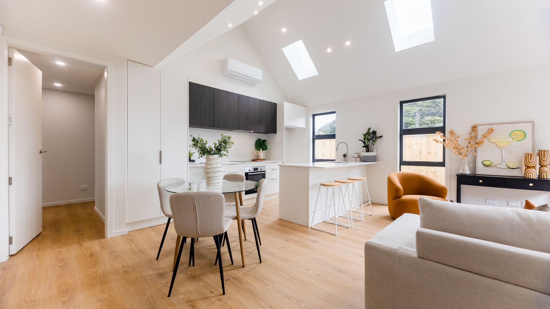 Welcome to Ruahine Rise. An architecturally designed collection of eight thoughtfully crafted homes, each on its own freehold title. Crafted for effortless living with a refined edge, these homes combine striking street presence with practical, low-maintenance design. Every detail has been carefully considered to deliver comfort, timeless style, and everyday ease. Step inside and a pitched ceiling greets you, elevating the open-plan kitchen, dining and living area. This creates light, space and architectural interest from the moment you walk in.