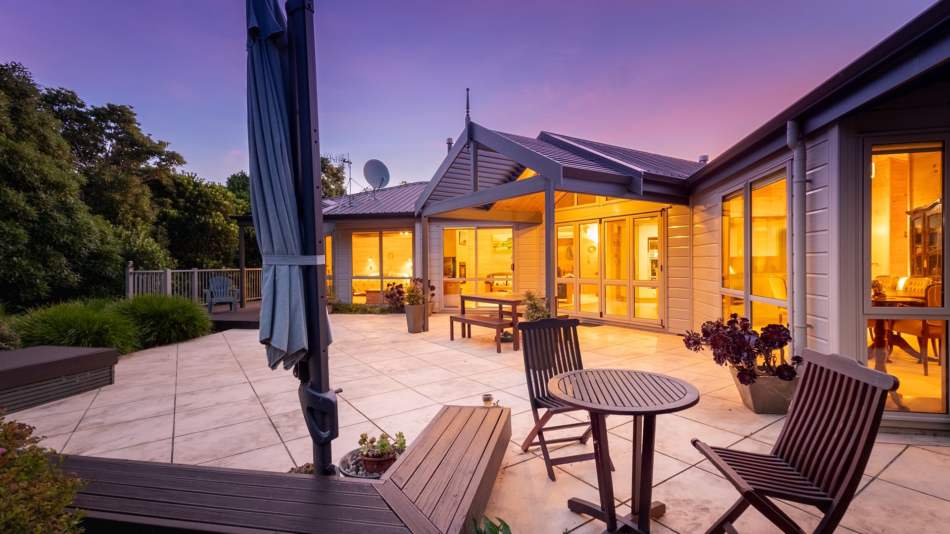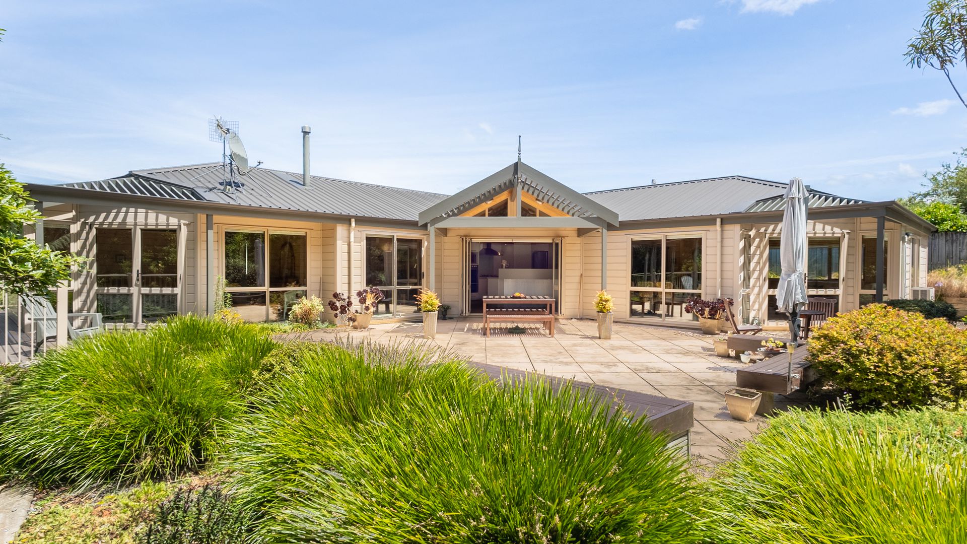 Built in 2009, this stunning home delivers that rare balance of architectural soul and everyday calm. From the moment you arrive, there’s an immediate sense of ease. The kind that only comes from thoughtful design done properly. Inside, white-washed interiors and soaring pitched ceilings set the tone: light-filled, warm, and effortlessly cool. This is a home with personality, timeless, but never boring. At its heart, the open-plan kitchen and dining zone anchors the home, flowing seamlessly into two distinct living areas. Whether it’s laid-back family living or hosting friends, the layout flexes easily to suit your lifestyle. Oversized doors extend the living spaces and the main bedroom straight outdoors, creating a beautiful indoor-outdoor connection and allowing the home to breathe.