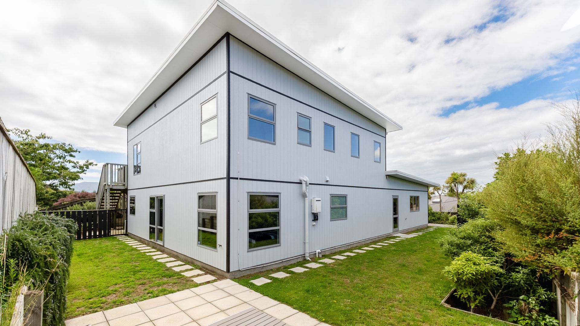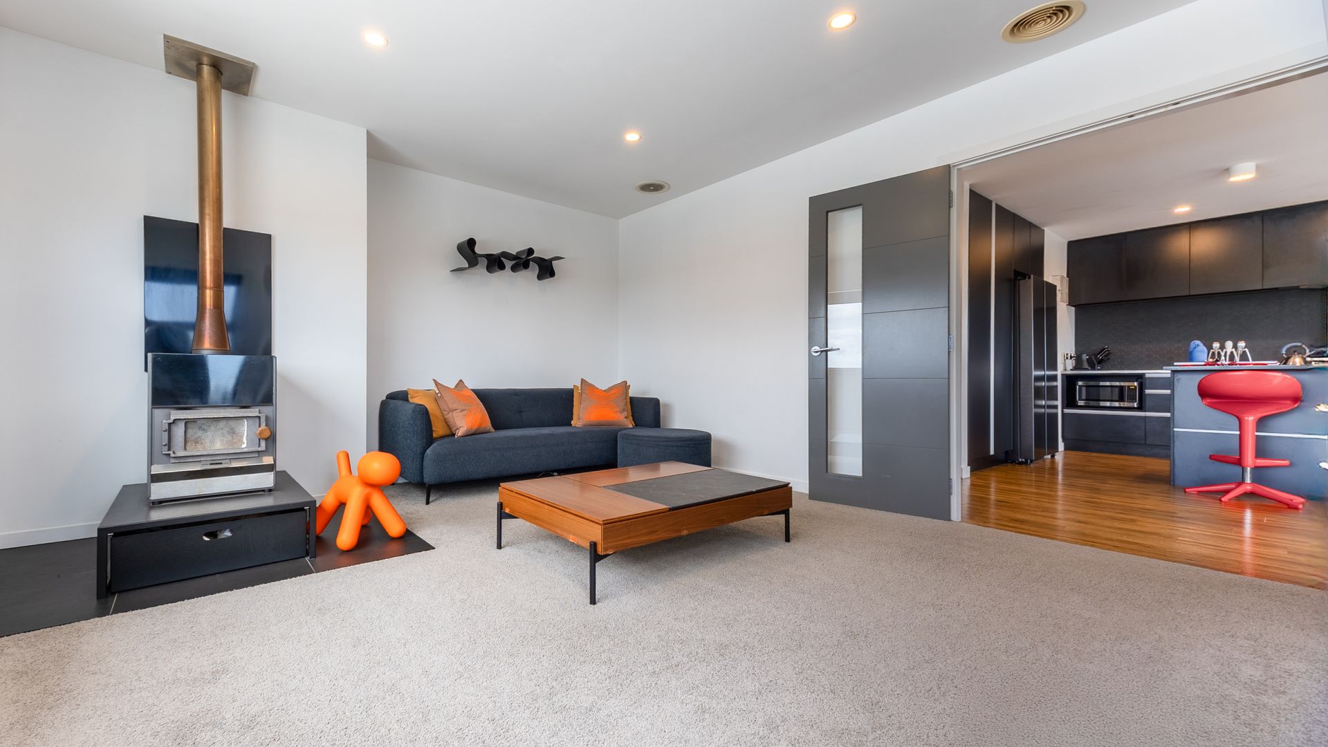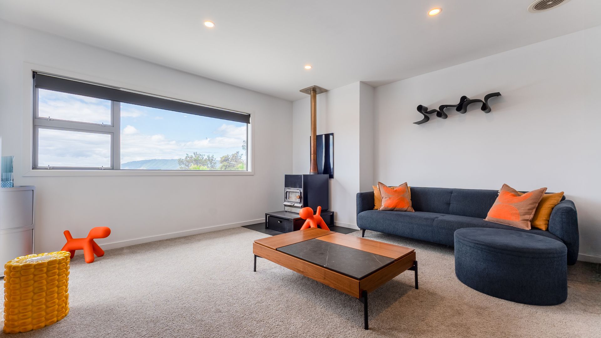 This multi-level family home is designed with intention. The lower level is dedicated to the private zone: four bedrooms, the main bathroom, and a standout main bedroom complete with walk-in robe and ensuite. It’s a proper retreat level, tucked away from the main living spaces. Upstairs is where the home opens up. The open-plan living, dining, and kitchen sit elevated to soak in the sweeping outlook, while a separate lounge with a wood burner creates a second living zone with real atmosphere. Both living areas enjoy wide, elevated views, from Kāpiti Island to the west and across the airport to the north, giving the home that light, airy, “above it all” feel.